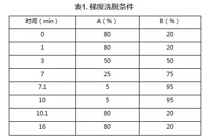 注:为更好的消除基质效应对检测结果造成的影响,可加入同位素内标,采用内标法定量检测。