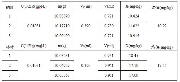 柏叶中平均二氧化硫含量为10.92mg/kg,朴叶中平均二氧化硫含量为17.55mg/kg。实验结果重复性良好,符合国标的要求。用二氧化硫测定仪配合电位滴定仪检测二氧化硫操作更加简单,结果更准确,还节省了大量的时间,提高了工作效率。