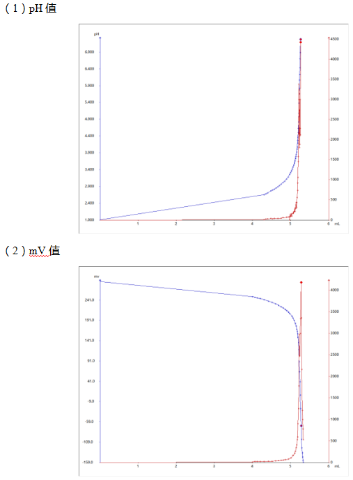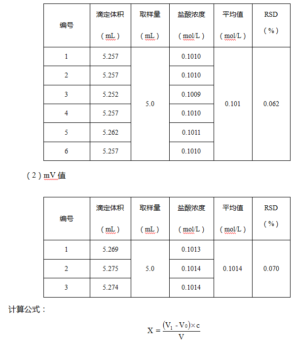 用大肚移液管取5.0mL盐酸,加入50mL水,用氢氧化钠标准溶液滴定至终点,分别用pH和mV值显示。同时做空白实验。