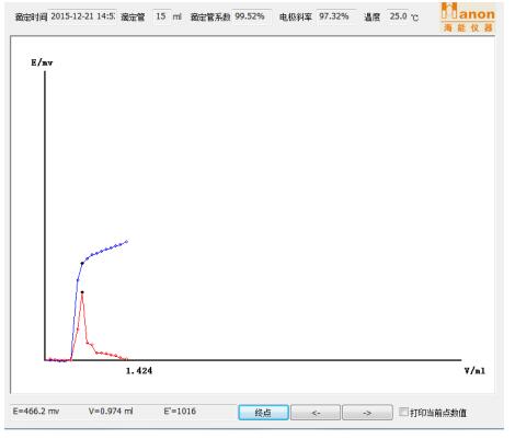 用移液枪移取试液5mL,加入10mL饱和焦磷酸钠,80mL稀释水于滴定杯中,以铂电极作指示电极,饱和甘汞电极作参比电极,高锰酸钾进行滴定。
