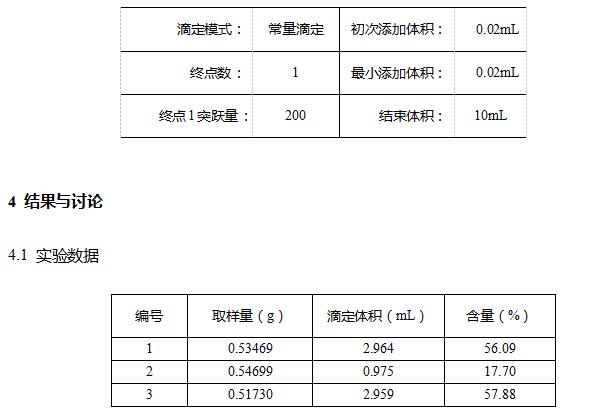 含铝试样中的阳极材料锰含量为56.09%,其他两种样品分别含量为17.70%和57.88%,实验表明测定锰含量用氧化还原法是一种方便快捷的方法。