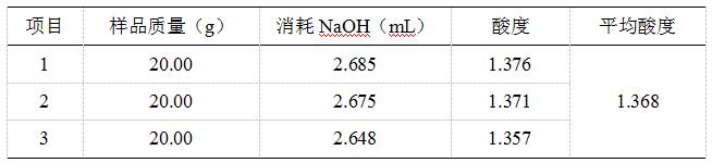 根据此表可知,自动滴定仪采用预设终点滴定法,预设滴定终点pH:8.3,预控点:8.0,预控量:40%,延时时间:10S,测定结果重复性良好,同时节省时间,方便快捷。