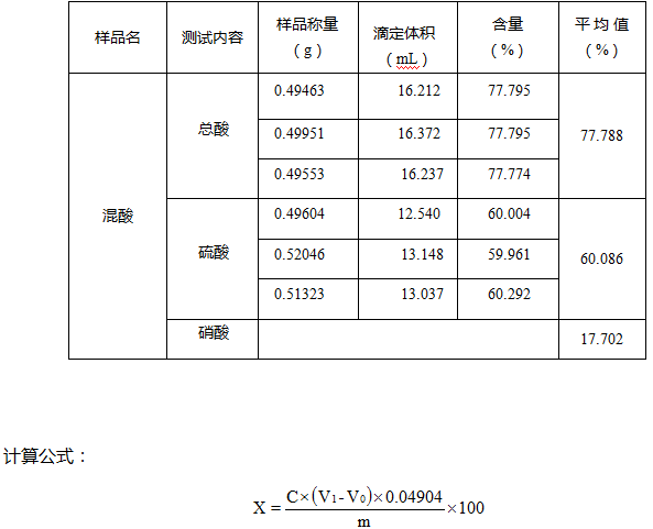 X -- 样品中混酸/硫酸的含量,单位为(%);
