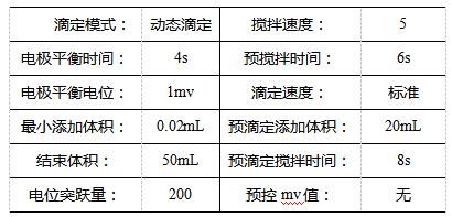 试样预先用马弗炉在250~260℃烘2h,后取出置于干燥器中,冷却至室温。称取样品约0.5g(精确至0.0001g)于滴定杯中,加入20mL水使其溶解,之后用盐酸滴定液滴定至终点,同时作空白试验。