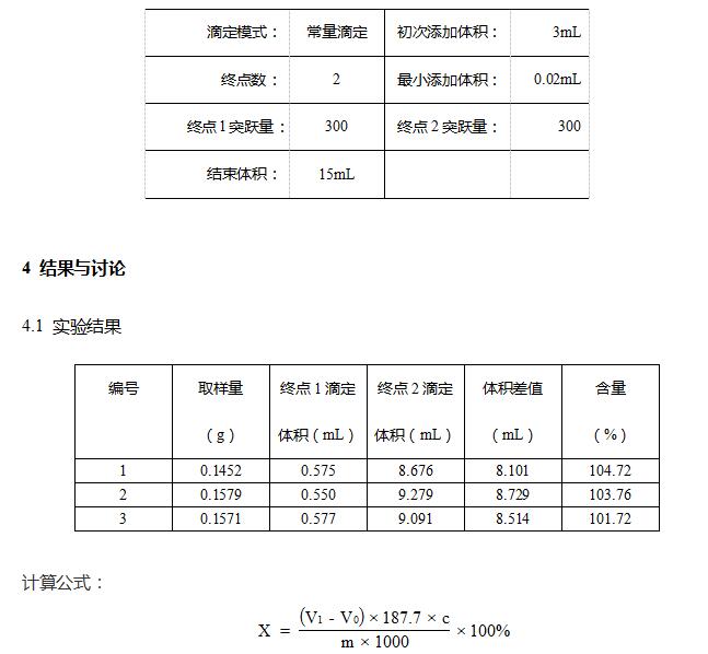 取本品约0.15g,精密称定,置电位滴定仪专用烧杯中,加0.01mol/L盐酸溶液5mL与乙醇50mL使溶解,用标定的氢氧化钠滴定液(0.1000mol/L)滴定,两个突跃点体积的差作为滴定体积。