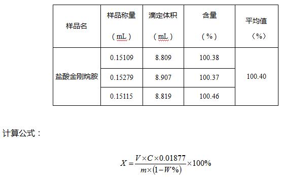 根据文献要求,用电位滴定法测定盐酸金刚烷胺含量,平行实验结果的差值小于1%,平行性较好,操作简单。