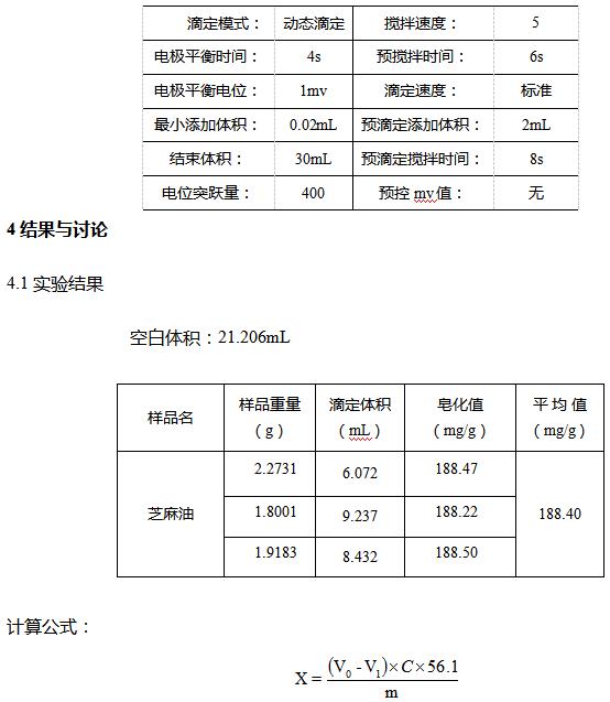 电位滴定法测定芝麻油皂化值