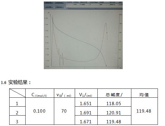 池塘水中平均总碱度为119.48mg/L。用此方法测定水中的总碱度,操作简单,重复性良好。