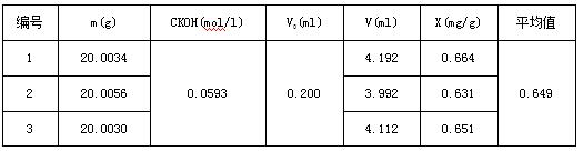方便面提取的油脂的酸价测定用电位滴定法检测出来的结果平行性良好,符合国标的要求。