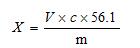 式中:x---试样的酸价(以氢氧化钾计),单位为毫克每克(mg/g)