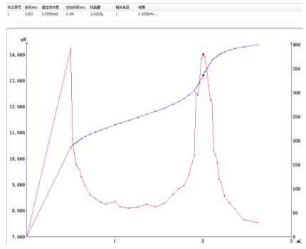 测定方法:准确称取1g-1.5g左右的油脂(若为固体先将其融化),置于滴定杯中,加入异丙醇-乙醚混合溶液60ml溶解,搅拌均匀,用氢氧化钾标准滴定液(0.1mol/l),以pH非水电极为工作电极,在T960上进行滴定至终点。