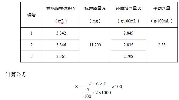 X --试样中还原糖的含量,单位为克每百毫升(g/100mL);