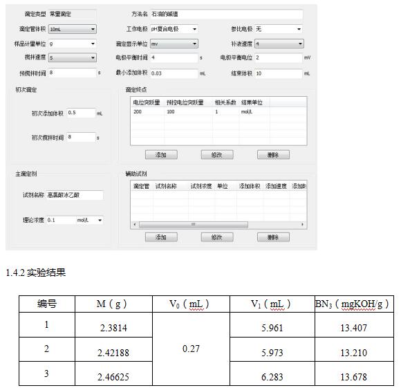 1.3.2实验步骤:称取约2.5g的石油,置于滴定杯中。先加入40mL氯苯,用电位滴定仪上的搅拌器搅拌溶液直到试样完全溶解。再加入20mL冰乙酸。混匀后用高氯酸冰乙酸溶液(0.1mol/L)进行滴定至终点。