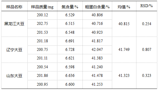 杜马斯燃烧法测定大豆中的粗蛋白含量