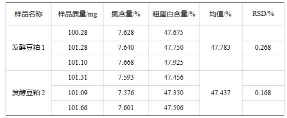 另外使用D100杜马斯定氮仪测试发酵豆粕中的粗蛋白含量,重复性符合两个独立测量结果之间的绝对差,5%案例不超过重复性限r值0.17的要求。