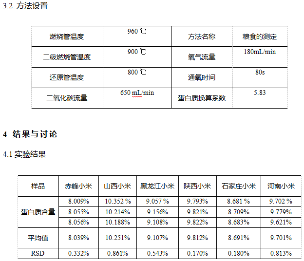 杜马斯燃烧法测定小米中粗蛋白含量