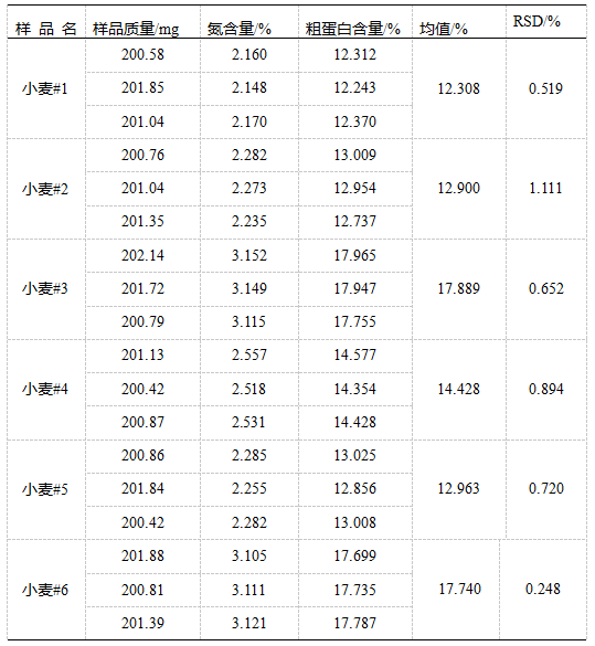 从实验结果可以看到,采用D100杜马斯定氮仪可以快速、准确的检测小麦中的蛋白质含量。但不同品种的小麦蛋白质含量差异较大,可见品种的培育以及地区的差异对小麦的蛋白含量有重要影响。