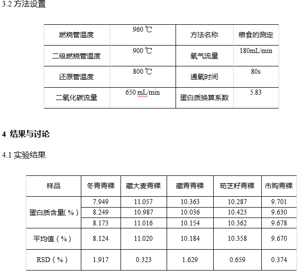 杜马斯燃烧法测定青稞中粗蛋白含量