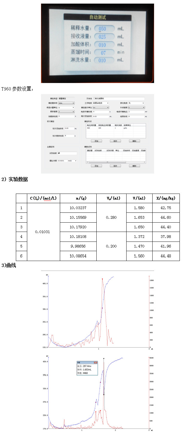 实验时需注意:实验时建议选择微量滴定进行实验,因为常量滴定是一动态滴定过程,微量滴定除初次添加之外的每次添加体积都是一样的,便于控制滴定过程。滴定过程滴定管注意避光,以免引起滴定剂浓度的变化。由于该滴定类型属于氧化还原滴定,终点时电位突越很大,参数设置时可以将电位突越量设置的大一些,以免其他的假突越干扰终点判断。
