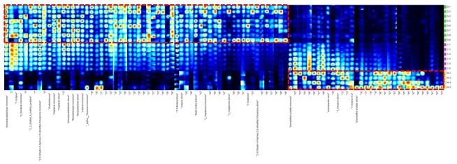从图中可以看出每种样品的完整挥发物信息以及样品之间挥发性有机物的差异
