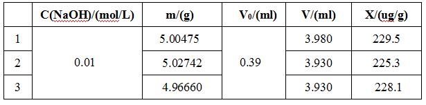 式中A---供试品溶液消耗氢氧化钠滴定液的体积,ml