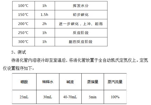 利用石墨消解仪进行消解,将消化管放在石墨仪上,盖好排废罩,连接废气吸收系统。消化过程采用曲线升温模式,设置参数如下表。
