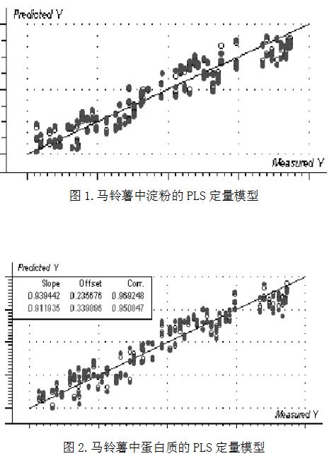 在这里本实验不仅建立了马铃薯中淀粉、蛋白质的定量模型,而且还建立了马铃薯的定性模型。所以,该检测不仅可以快速检测马铃薯中淀粉、蛋白质的含量,还同时判定出马铃薯是否合格。