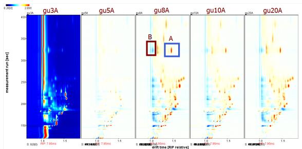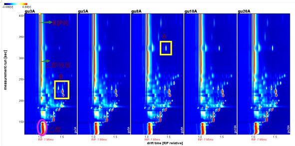 2.纵坐标为同一保留时间及漂移时间下的有机物的信号峰