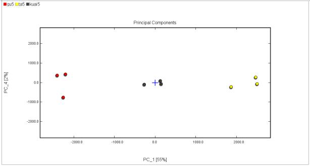 据上图可知:不同品牌的黄酒三个平行样各自聚集在一起,选取大量样品建立不同品牌的分类模型后,可快速鉴别黄酒的品牌,为品牌保护提供数据支撑和理论依据。