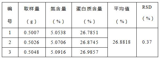 通过数据可知,利用全自动凯氏定氮法测定扁桃中的蛋白质含量平行性良好,且具有操作简单,安全性高,节省人力等优点。