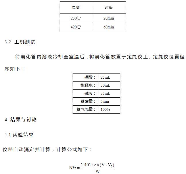 本文采用全自动凯氏定氮仪代替原有玻璃器具和半自动仪器完成实验,具有操作简便,实验数据准确、重复性好等优点。