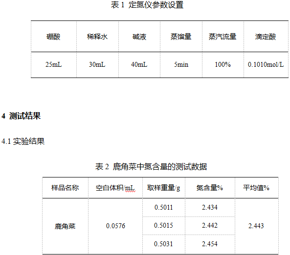 从实验结果可以看到,采用K1100F凯氏定氮仪可以准确的检测鹿角菜中的氮含量。