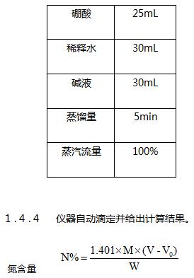 待消化管内溶液冷却至室温后,将消化管放置于定氮仪上,开始蒸馏滴定。定氮仪设置程序如下: