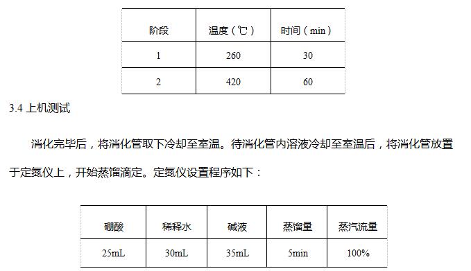 利用石墨消解炉进行消解,将消化管放在石墨炉上,盖上排气罩,连接废气吸收系统,设定消解温度参数如下表: