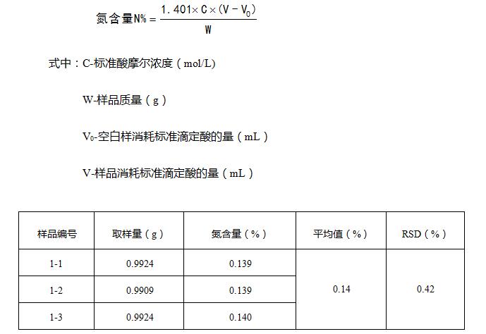 清开灵颗粒,清热解毒,镇静安神。《中国药典》2015年版第一部里成方制剂清开灵颗粒含量测定项下明确规定了其每袋含氮量应为11.0~15.0mg,氮含量的测定方法采用了《中国药典》2015年版通则中氮测定法—凯氏定氮法。本文采用《中国药典》2015年版通则中氮测定法第三法以全自动凯氏定氮仪进行实验,测定清开灵颗粒(10g/袋)样品每袋含。本实验操作简单,安全性高,测得结果平行性良好。