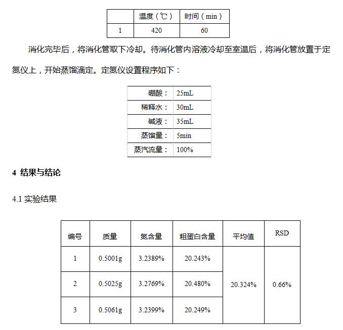凯氏定氮法测定小鼠饲料中粗蛋白质含量