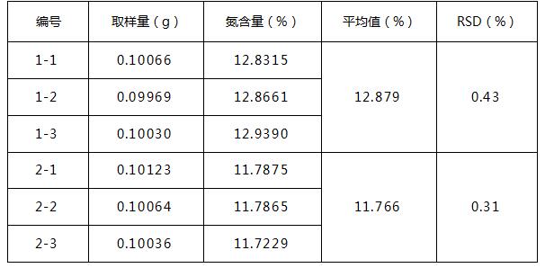通过以上测得数据可知,利用全自动凯氏定氮仪测定药用辅料中氮含量平行性良好,且具有操作简单,安全性高,节省人力等优点。