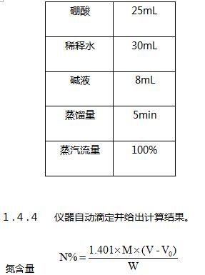 待消化管内溶液冷却至室温后,将消化管放置于定氮仪上,开始蒸馏滴定。定氮仪设置程序如下: