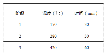 消化管中加入一片催化剂片(或硫酸铜:硫酸钾=1:15;硫酸铜0.2g,硫酸钾3g),浓硫酸取10.0mL,轻轻摇动使充分混合,同时做空白实验。将消化管架放置在石墨炉上,加盖废气罩,连接废气吸收系统。消化采用曲线升温模式,设置如下: