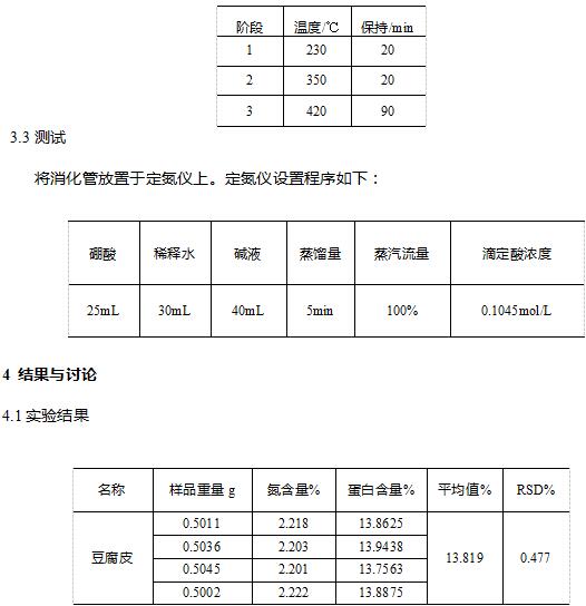 凯氏定氮仪测定豆腐皮中粗蛋白的含量
