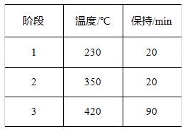 利用石墨消解炉进行消解,将消化管放在石墨炉上,盖上排气罩,连接废气吸收系统,消化完毕后,将消化管取下冷却至室温。消化过程采用曲线升温模式,设定消解参数: