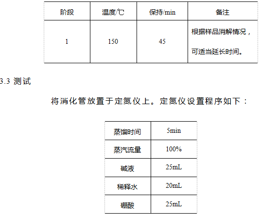 盐酸(分析纯),20g/L硼酸溶液,溴甲酚绿-甲基红混合指示剂,40%氢氧化钠,0.02mol/L硫酸标准滴定液。
