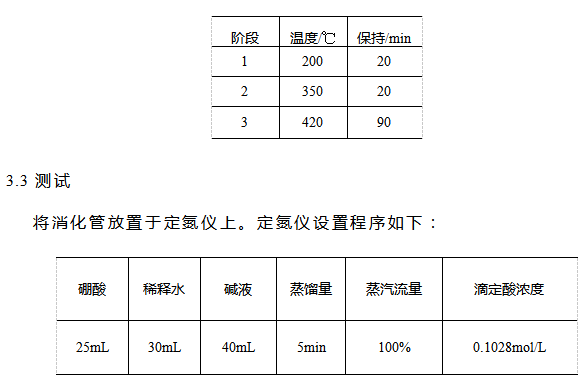 将消化管放置于定氮仪上。定氮仪设置程序如下: