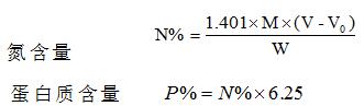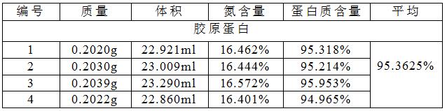 胶原蛋白粉中的有机态氮在浓硫酸和催化剂的共同作用下,转化为氨态氮。加碱蒸馏后,用硼酸吸收后,再以硫酸标准滴定液进行滴定。