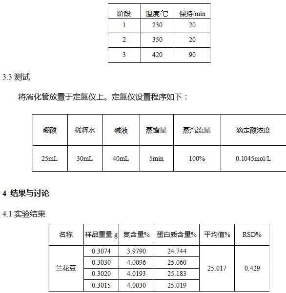 凯氏定氮仪测定兰花豆中粗蛋白的含量
