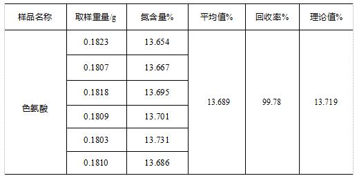 通过实验结果可以看到,使用此方法测试的色氨酸氮含量回收率可以达到99.78%,回收率较高。