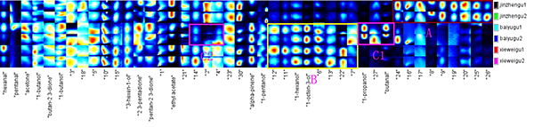 2)金针菇、白玉菇和蟹味菇中挥发性有机物的指纹谱图分析