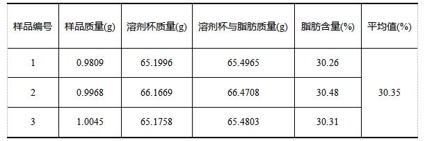 《GB 5009.6-2016食品安全国家标准 食品中脂肪的测定》中对于精密度规定:在重复性条件下获得的两次独立测定结果的绝对差值不得超过算术平均值的10%。实验各样品三次独立测定结果绝对差值均未超过算术平均值的10%,符合标准要求。