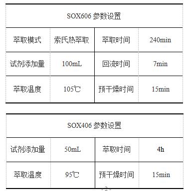 实验中抽提溶剂可以根据实际情况选择无水乙醚、石油醚,实验中仪器温度设置一般高于所用溶剂沸点10-20℃为宜。如选择无水乙醚作为溶剂,应将样品彻底干燥。如选择石油醚作为溶剂,可允许样品中存在微量水分。样品需进行充分研碎或粉碎。颗粒尺寸越小,混合越均匀,样品中脂肪越容易被萃取出来,从而可缩短萃取时间,提高工作效率。无水乙醚、石油醚均存在易燃易爆风险,且会对人体造成伤害,实验过程中应注意保持良好通风,或将仪器放置于通风橱中。