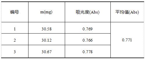 精密量取5mL提取液,置50mL容量瓶内,加甲醇至刻度,摇匀。采用i5紫外可见分光光度计在波长为432nm处,测定其吸光度。